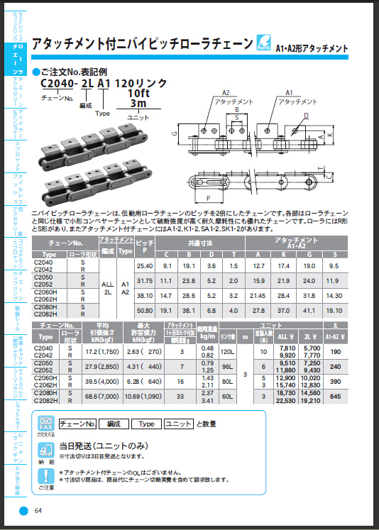 ■ 带付板双节距滚子链(A1 A2型)